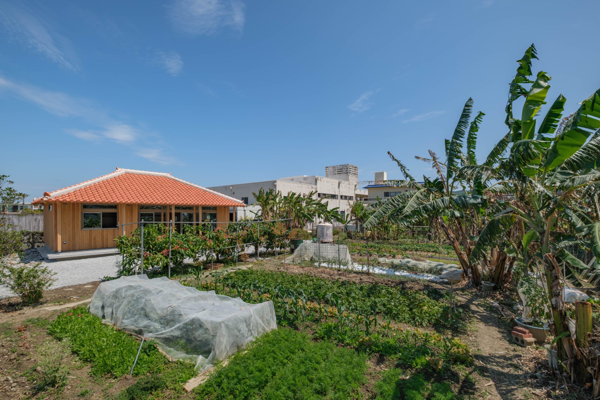 温かみのある沖縄古民家風の木の家で、自然と調和した暮らしを楽しむ佐敷のいえ。 広々とした畑で自家製野菜を栽培し、小さな平屋で自然の恵みを味わいながら暮らす。 必要以上に"モノ"を持たないシンプルな生活に合わせた19坪の小さな家です。